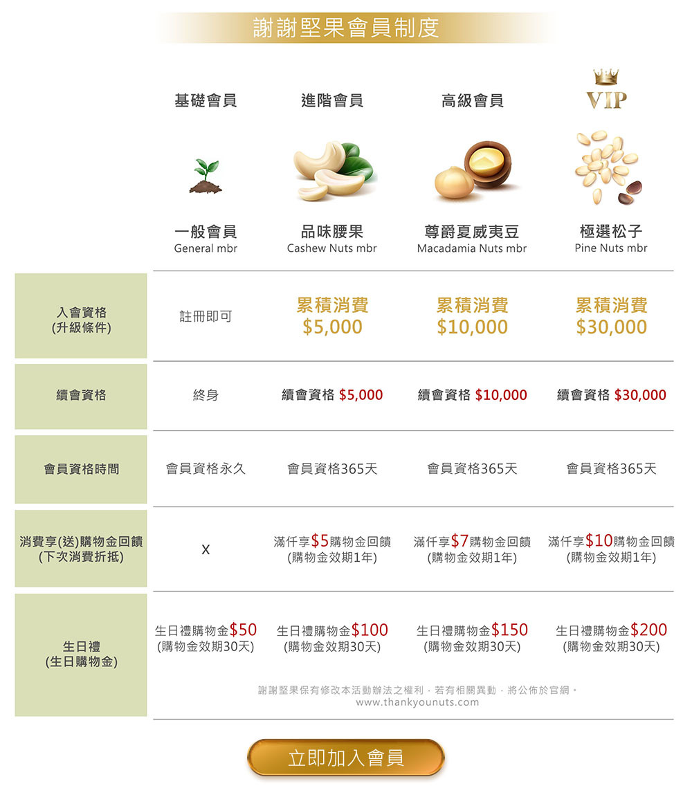不論哪一種情境,都建議事先 對照 謝謝堅果 11.11(雙11優惠) 的「會員等級 × 三階門檻」,