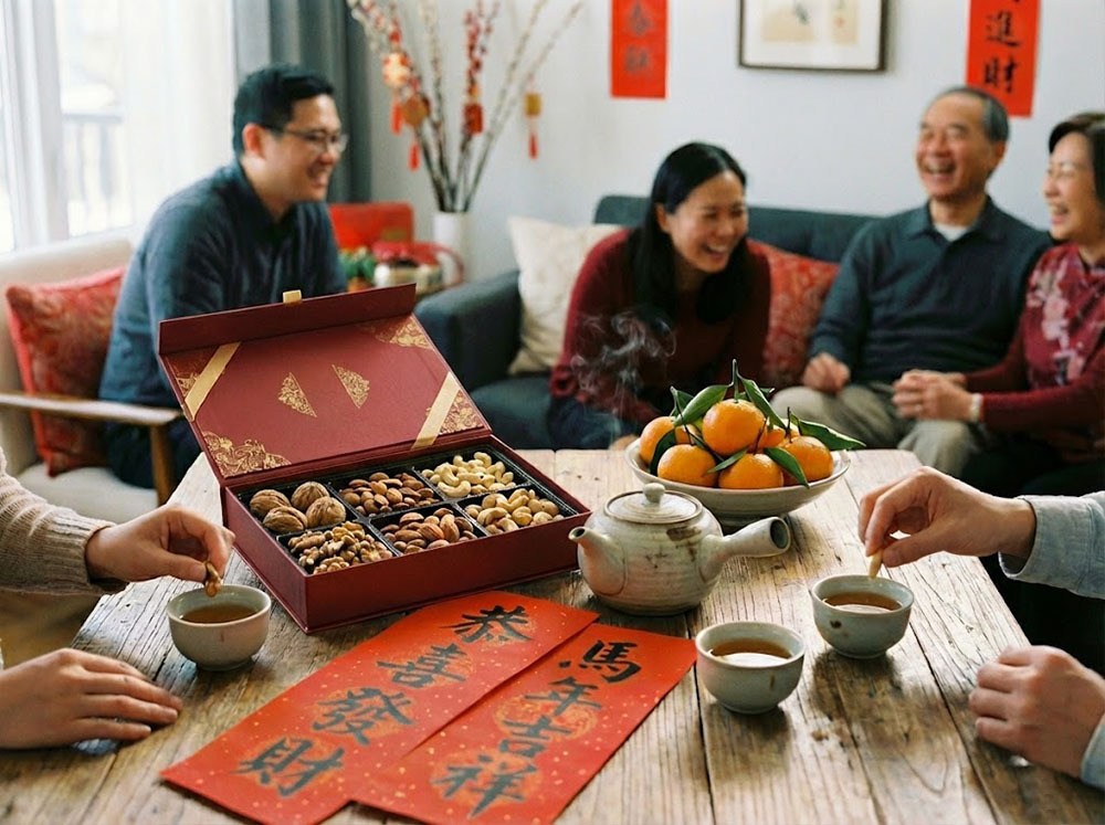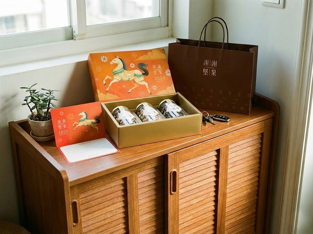 如果你送的是客戶或主管,賀卡可以更簡短俐落,但仍保留具體感,例如「感謝一年來的照顧,祝新年順心」。搭配體面的馬年堅果禮盒或春節禮盒,整體就很完整。