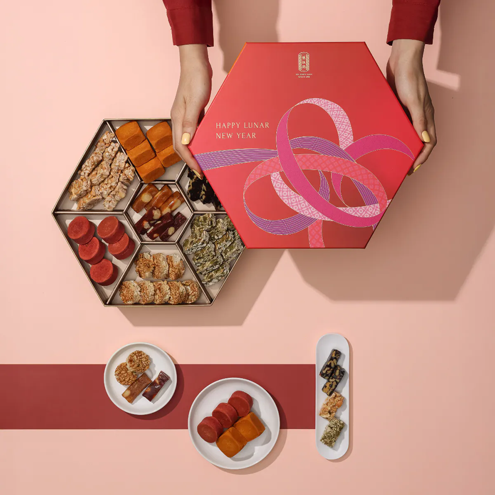 想要走「傳統但不老派」的路線,舊振南是很多台灣人心中非常穩的選擇。它的強項在於把漢餅/甜品做成更精緻、可分享、也更有年節寓意的組合。例如官方春節系列中就有以「滿載 7 樣福氣小點心」為概念的禮盒,並搭配節慶贈品與提袋,讓收禮者收到就能感受到完整的年味。這類禮盒特別適合送給重視「傳統味+吉祥意頭」的長輩,或是喜歡經典台味、但又在意包裝質感的人。