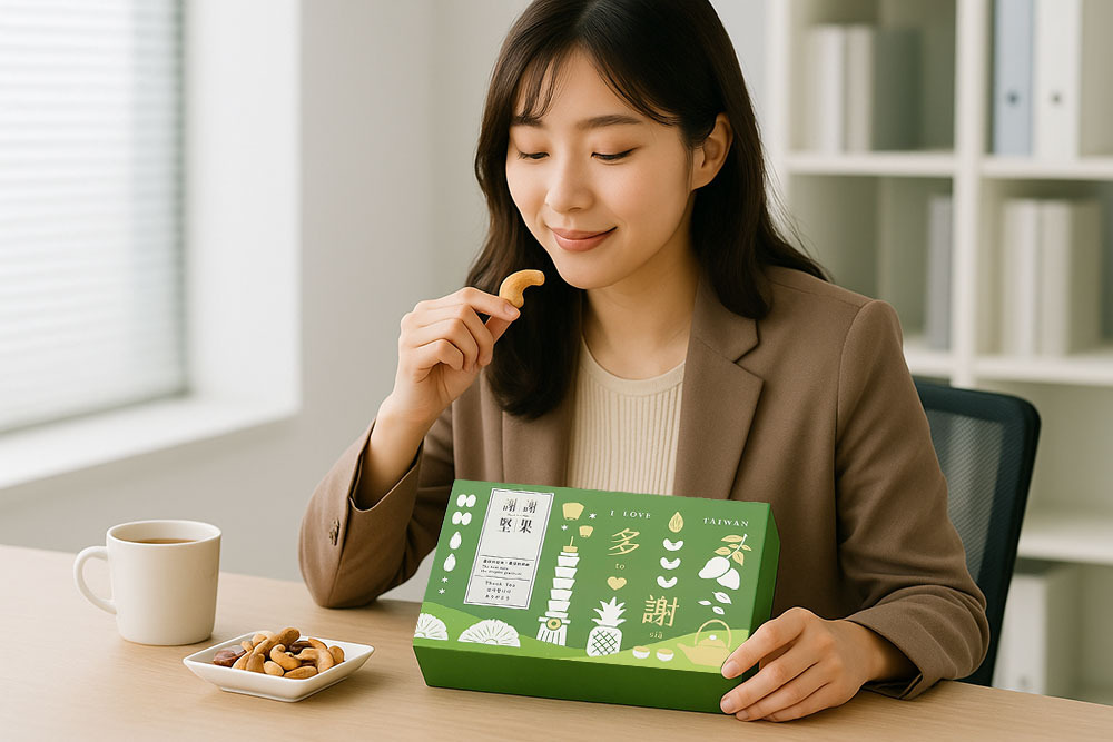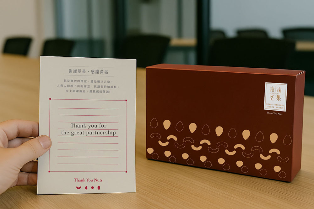 像「謝謝堅果」這類品牌,若有清楚標示成分、產地、烘焙方式,並採取低溫烘焙、少添加的做法,就能讓收禮人感受到企業在選禮時的用心:不是亂買一盒,而是希望對方在日常生活裡,真的會願意打開享用。