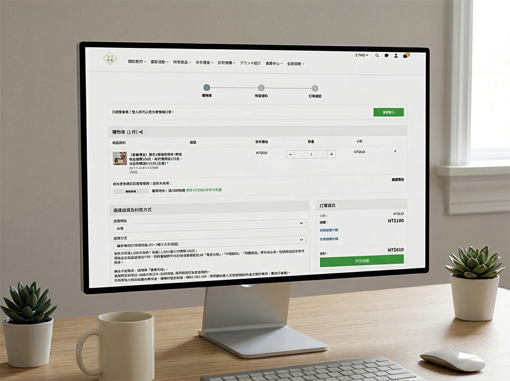 🔹 建議圖片:購物網站加入購物車的畫面,清楚顯示品項與運費金額
