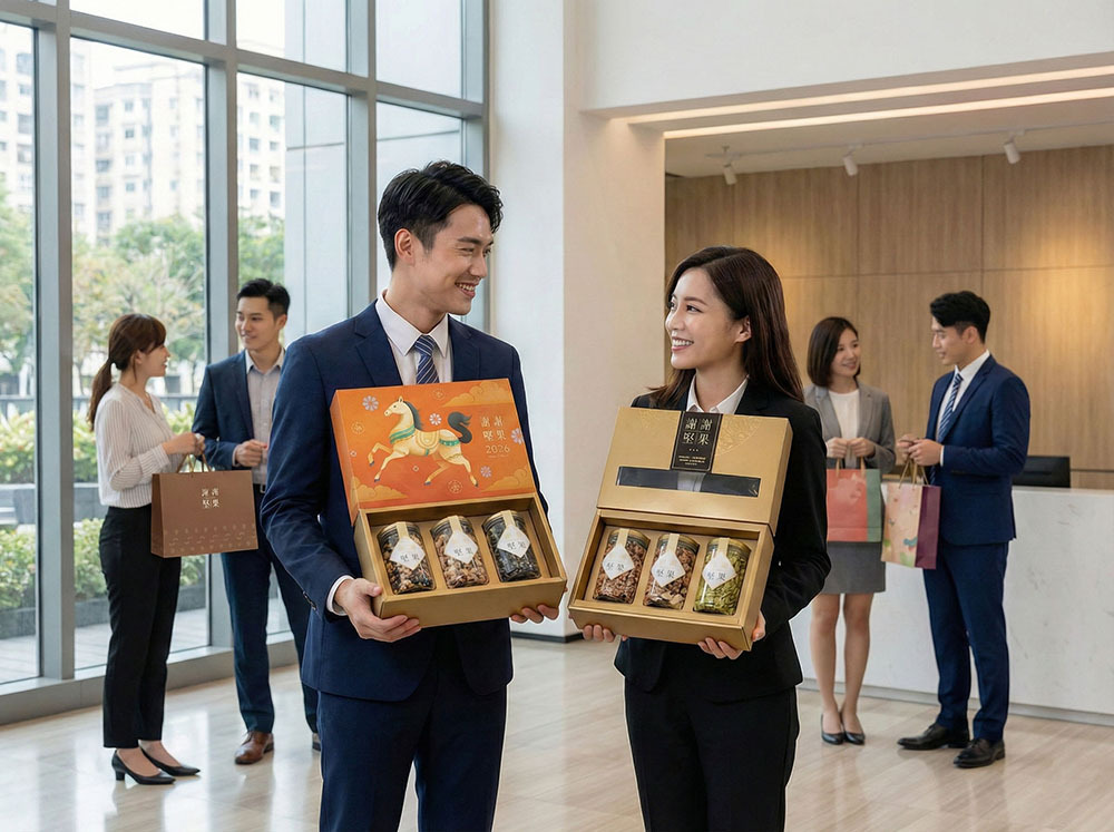 台中過年送禮應依對象選擇堅果禮盒:長輩重視穩重與信任感、同事偏好實用與好分享、客戶則需兼顧質感與體面。