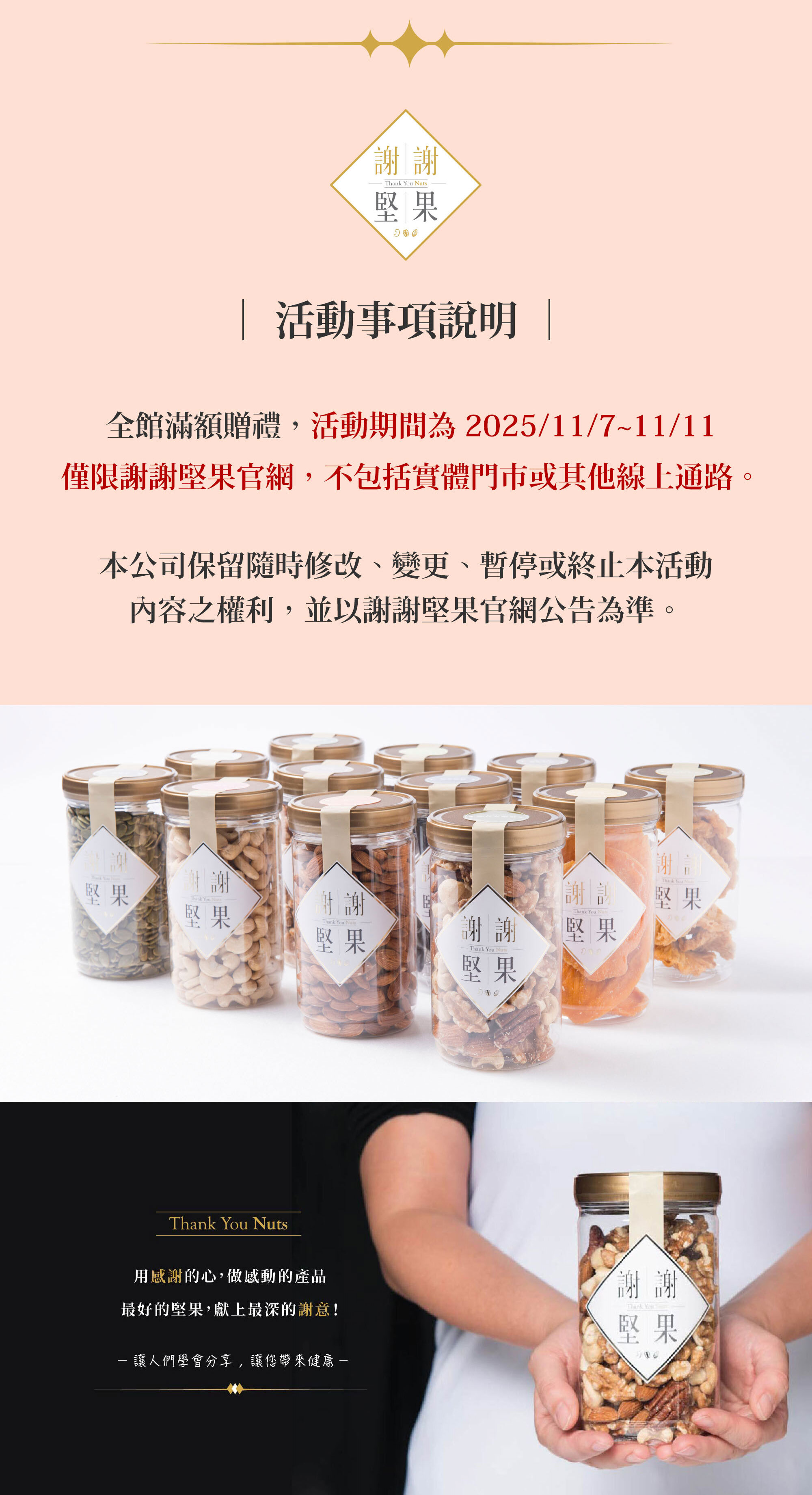 © 2018 Thankyounuts 謝謝堅果,祁邁國際有限公司 (統編: 66588972). All Rights Reserved.