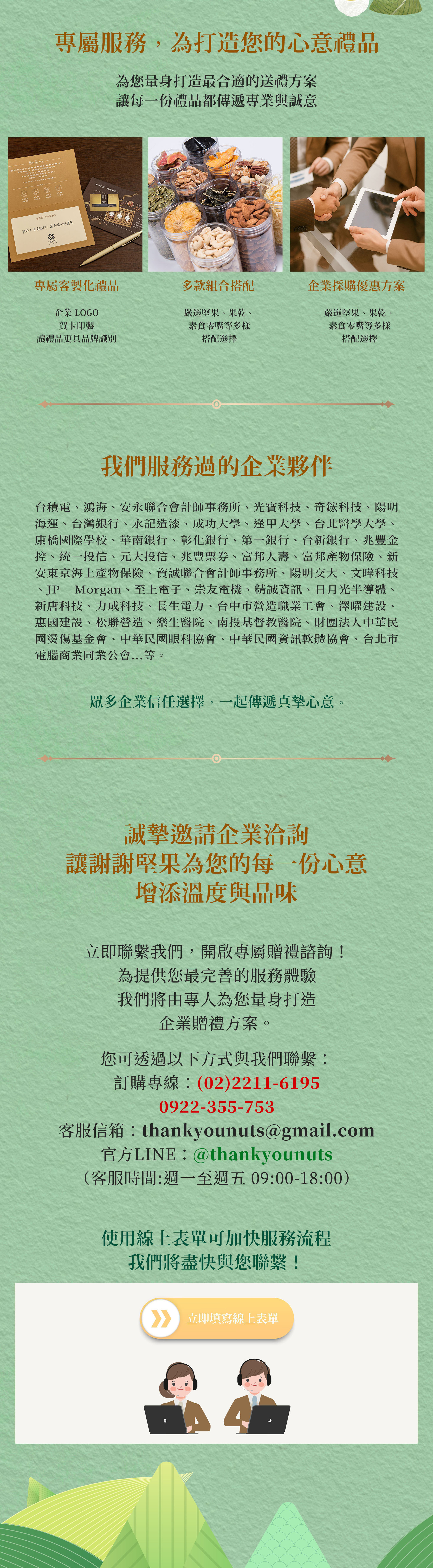 大宗採購/企業送禮:(02) 2211-6195 或 0922-355-753