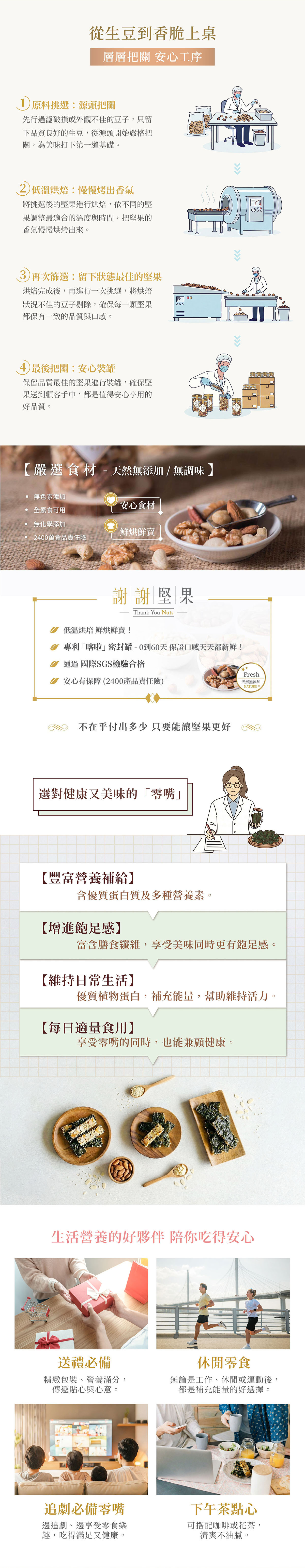 謝謝堅果使用專利『喀啦』密封罐,保證0到60天,每天吃到的,都跟剛烘好的一樣美味新鮮!